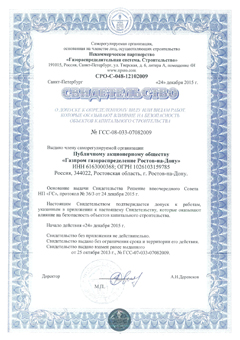 Свидетельство о допуске к определенному виду или видам работ, которые оказывают влияние на безопасность капитального строительства №ГСС-08-033-07082009 от 24 декабря 2015г. |