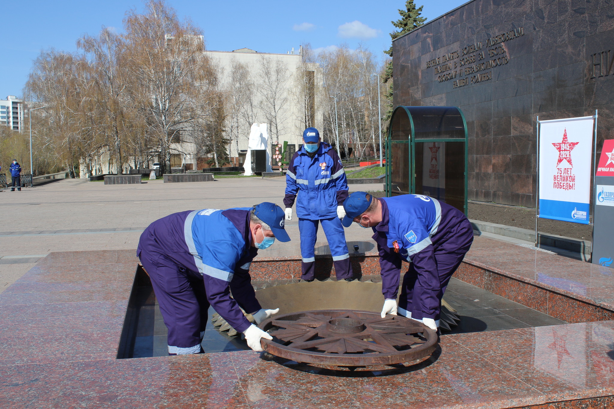 Газораспределительные организации Группы «Газпром межрегионгаз» к празднованию 75-летия Победы в Великой Отечественной войне провели техническое обслуживание, ремонт и реконструкцию газового оборудования на 1437 мемориалах с Вечным огнем в 1303 городах и населенных пунктах Российской Федерации. Работы выполнены в рамках всероссийской акции «Священный долг. Вечная память».