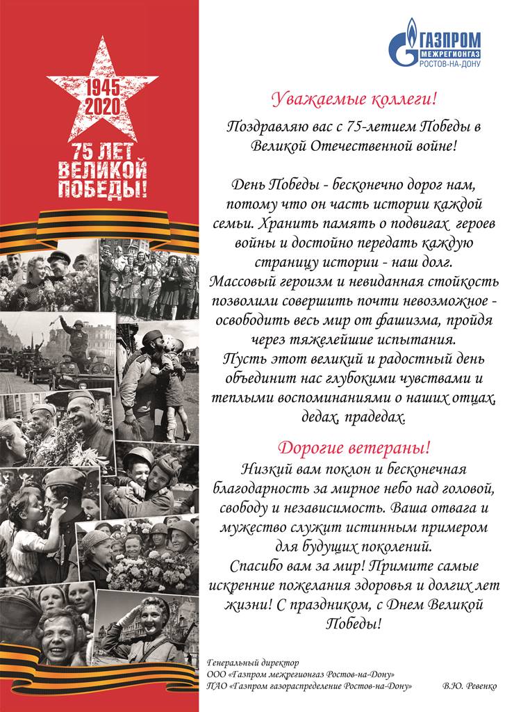 Генеральный директор ПАО "Газпром газораспределение Ростов-на-Дону" Владимир Ревенко поздравляет с 75-летием Победы в Великой Отечественной войне!!